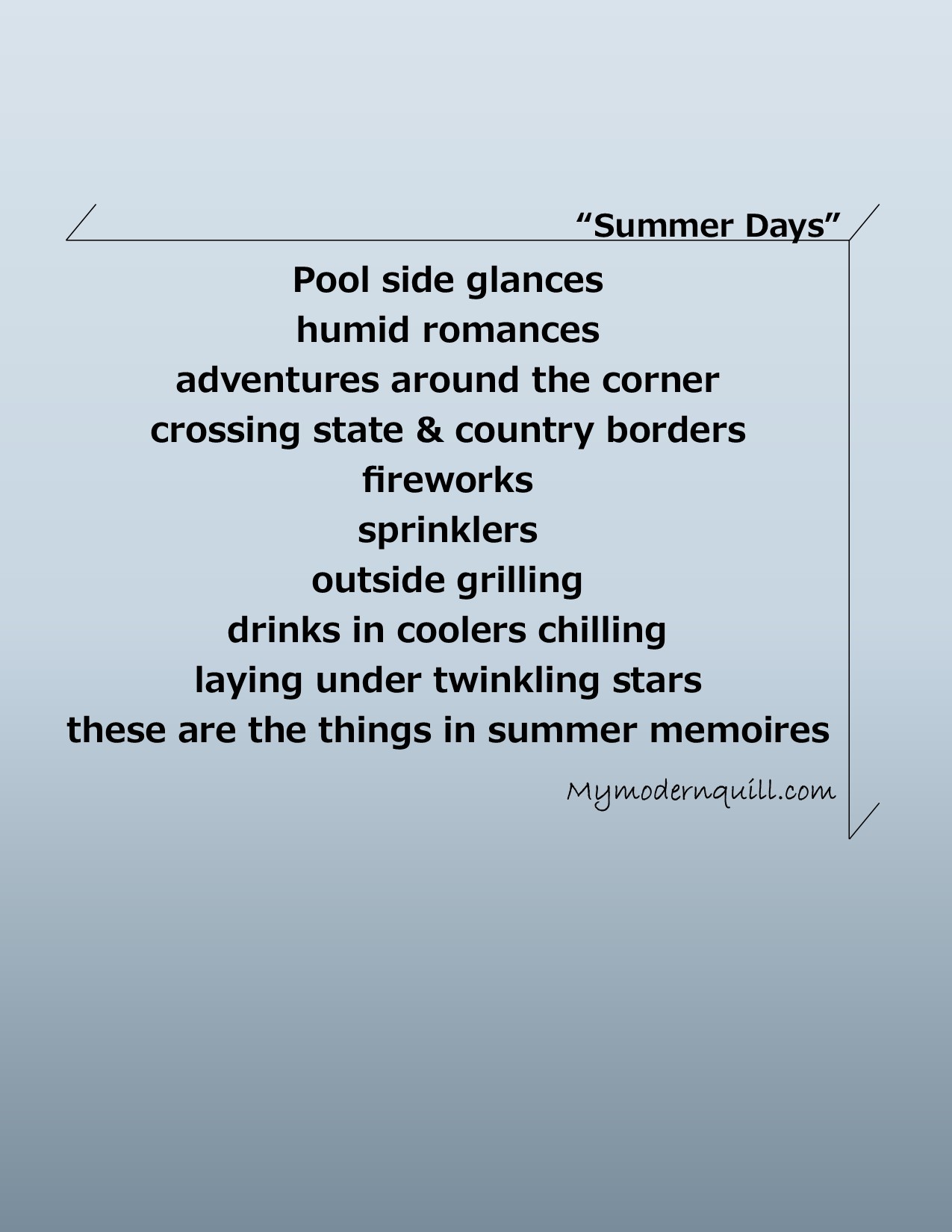 Summer Days Posted on July 16, 2019 by espiritumentelibre Share this: Click to share on Facebook (Opens in new window) Facebook Click to share on X (Opens in new window) X Click to share on Pinterest (Opens in new window) Pinterest Click to email a link to a friend (Opens in new window) Email Click to print (Opens in new window) Print Like Loading...