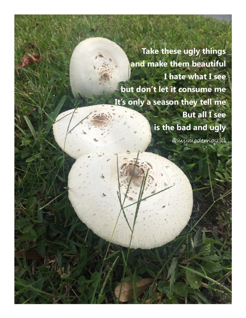 When making changes I tend to spot everything ugly that I want to change now. But it takes take time to see those changes come to fruition, but it doesn’t take the pain away of seeing the ugly. I just pray that I can get through this season and see the beauty in the process. Get my beauty for ashes and for some of the ugly that we can’t change – it’s like mushrooms. Some people think they’re ugly while others think they’re fascinating. And even mushrooms have purpose on the earth.