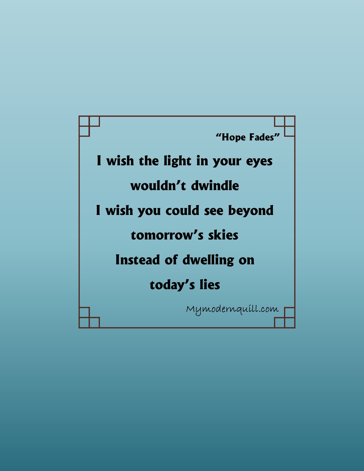 I once asked someone to dream big for me and they couldn’t. It made me sad to see the light in their eyes had faded. They didn’t have hope for a brighter future. They were just living life in the moment and taking it as it came. We are the dreamers of the dreams that can create our own destiny. Today may seem bleak like your dreams are so far away. Like there’s no point in hoping anymore but don’t give up. Look beyond tomorrow and keep going. Soon you’ll find yourself on the bright side of a sunny new day.