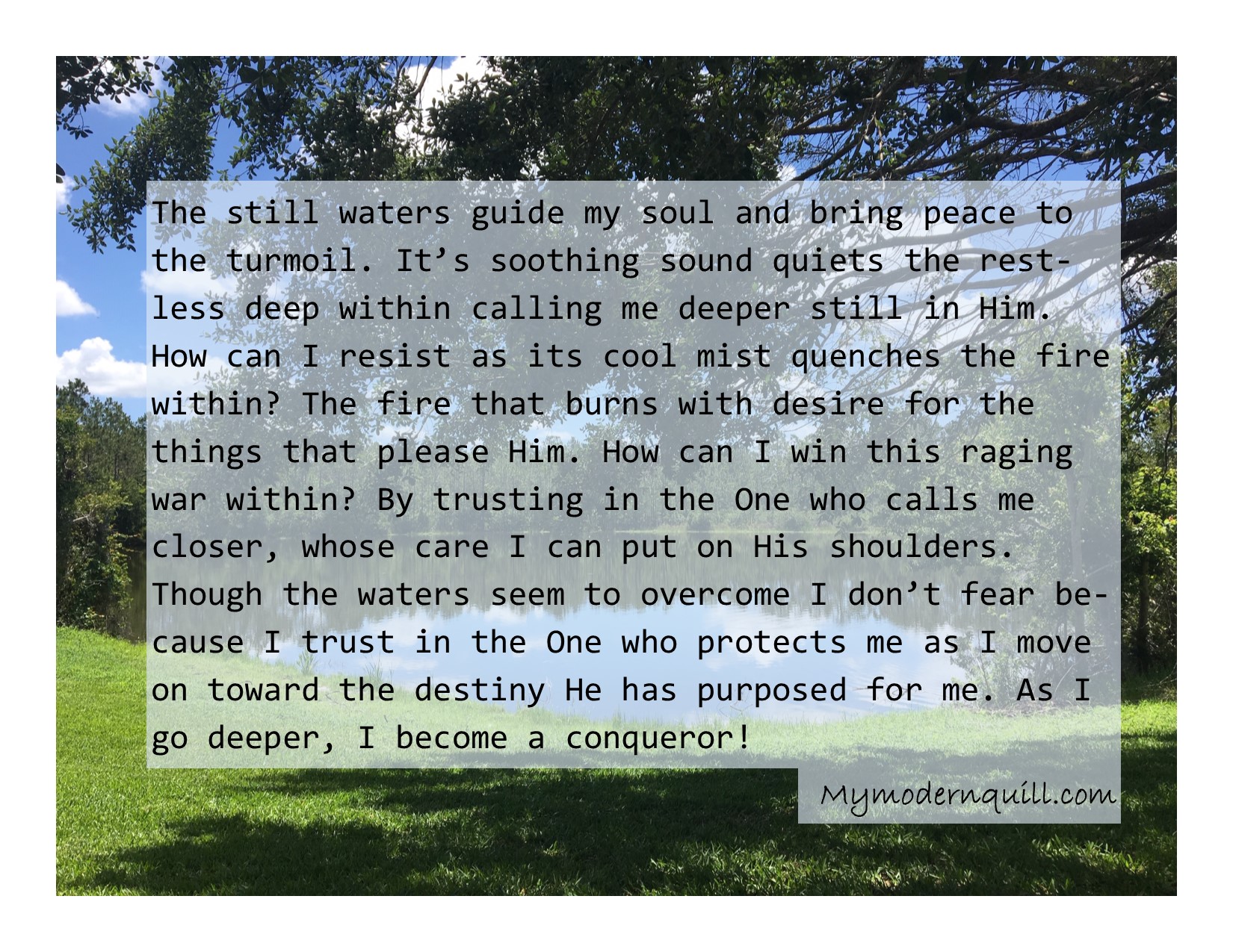 Still Waters Posted on July 3, 2019 by espiritumentelibre Share this: Click to share on Facebook (Opens in new window) Facebook Click to share on X (Opens in new window) X Click to share on Pinterest (Opens in new window) Pinterest Click to email a link to a friend (Opens in new window) Email Click to print (Opens in new window) Print Like Loading...